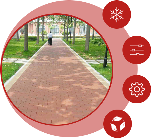 有優異的吸水性能,并且表面并沒有想象中的光滑,下雨后雨水進入磚體,粗糙的表面可以給行人和車有較好的摩擦力,使其在雨后有出色的防滑效果。